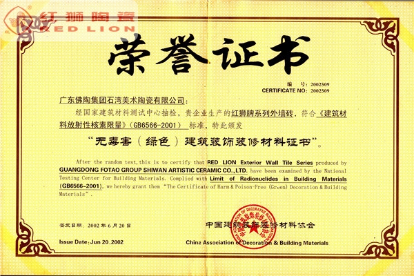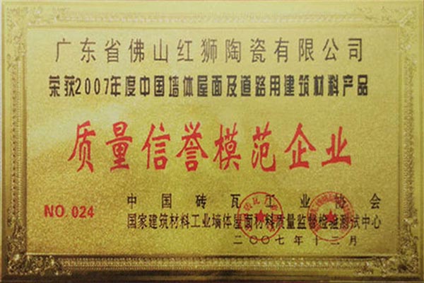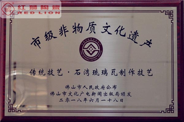 我司是廣東省內(nèi)唯一擁有“非物質(zhì)文化傳承”技藝的建材陶企,曾連續(xù)14年被評為廣東省重合同守信用企業(yè);1999年起持續(xù)通過ISO質(zhì)量管理體系認(rèn)證、ISO環(huán)境管理體系認(rèn)證、OHSAS職業(yè)健康安全管理體系認(rèn)證;2002年成立了經(jīng)佛山市科學(xué)技術(shù)局、佛山市發(fā)展計(jì)劃局、佛山市經(jīng)濟(jì)貿(mào)易局認(rèn)證的佛山市工程技術(shù)研究開發(fā)中心;2003年“紅獅”牌獲選廣東省著名商標(biāo);2005年被佛山市知識產(chǎn)權(quán)局授予佛山市知識產(chǎn)權(quán)示范企業(yè);2008年被廣東省建筑材料行業(yè)協(xié)會評為廣東省建材質(zhì)量信用企業(yè)、廣東省建材行業(yè)節(jié)能減排優(yōu)秀企業(yè)、改革開放30年廣東省建材行業(yè)突出貢獻(xiàn)企業(yè);2009年被廣東省科學(xué)技術(shù)廳評為廣東省民營科技企業(yè)、高新技術(shù)企業(yè);2009-2018年被評為廣東省清潔生產(chǎn)企業(yè);2017年被廣東省循環(huán)經(jīng)濟(jì)和資源綜合利用協(xié)會認(rèn)定為廣東省資源綜合利用企業(yè);2017年作為石灣琉璃瓦制作技藝傳承保護(hù)單位列入佛山市非物質(zhì)文化遺產(chǎn)項(xiàng)目名錄;2017及2018年被授予廣東省名牌產(chǎn)品。
