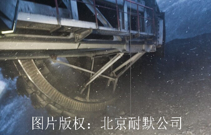 (2)斗輪挖掘機(jī)正在作業(yè),可以看出,前端工作區(qū)為耐磨復(fù)合鋼板
