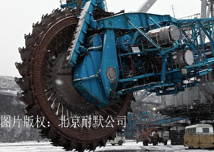據(jù)悉,該“大型怪物”名為斗輪挖掘機(jī),擁有奇妙的裝置和精巧的設(shè)計(jì),在它的前部安裝了巨大的回轉(zhuǎn)輪。回轉(zhuǎn)輪中的鋸的直徑達(dá)12米。整個(gè)機(jī)器的機(jī)身重量達(dá)45000噸,有4層樓那么高。機(jī)器的最外緣是一系列的勺狀或桶狀裝置,在此通過傳送帶完成煤炭的裝卸工作。可以掃清前方的一切障礙,即使是高高的礦山也不在話下。